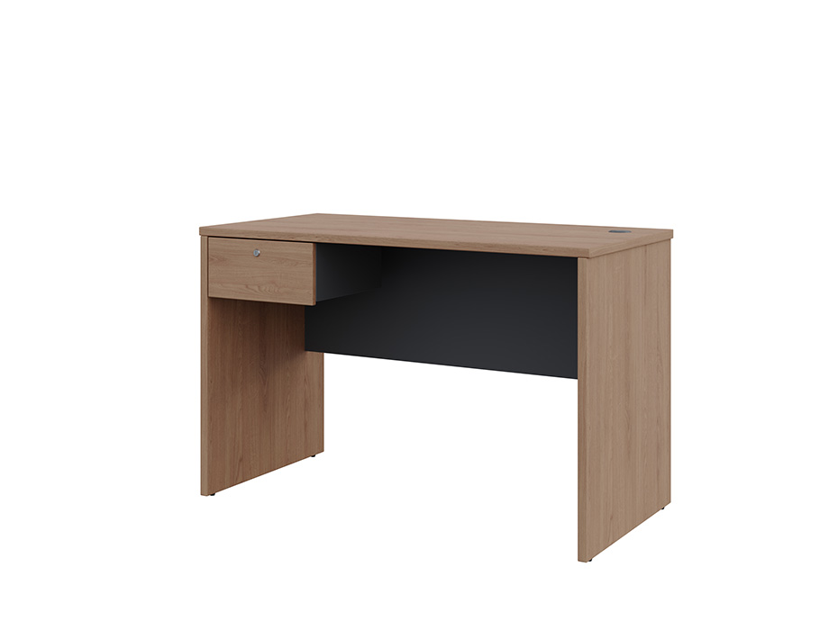 Increase space and work efficiency with our compact Topwell 1.0 office desk. Designed as the optimal office space-saving solution, Topwell features a spacious tabletop crafted from Tormina Elm, providing ample room (for monitors, laptops and more) packed into a singular and compact design. The desk features ample legroom along with a lockable drawer tucked under the desktop for convenient storage of documents and stationery items. The design is contrasted with a black vertical-fluted vanity panel that gives the entire desk a unique and smart look while a wire cup on the desktop allows cables to be passed through the desk, ensuring a neat and organized workspace. Its compact size and carpet glides at the base of the desk also make it easier to move around the office, making Topwell a truly versatile option for small offices, home offices, studies and more.